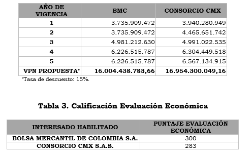 Tabla 2. Ingreso Anual Esperado propuesto por los interesados habilitados El Puntaje Final contenido en el Artículo 1 de esta resolución, es la suma de los puntajes obtenidos en la Evaluación Técnica y en la Evaluación Económica de las propuestas de cada interesado habilitado a participar en el proceso de selección del gestor del mercado, conforme a lo dispuesto en la Resolución CREG 055 de 2019.