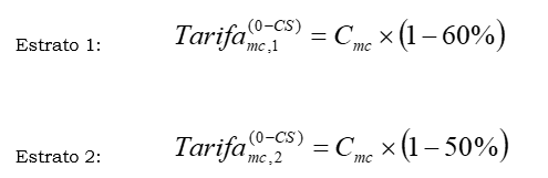 ART. 8º— Verificación mensual del límite máximo de subsidios. Una vez se ajuste la tarifa conforme a lo definido en el artículo anterior, se comprobará que el porcentaje de subsidio de la tarifa en relación con el costo de prestación del servicio sea menor o igual al límite máximo de subsidios para cada estrato, en cuyo caso, la tarifa aplicable será la calculada conforme con el artículo 7° de la presente resolución. En el caso que las tarifas impliquen el otorgamiento de subsidios por encima del 60% en el estrato 1 y 50% en el estrato 2, la tarifa a aplicar a los usuarios de los estratos 1 y 2 de los servicios públicos de energía eléctrica y de gas combustible por red de tubería será la resultante de ajustar el costo de prestación de servicio del mes de cálculo a estos valores de la siguiente manera: