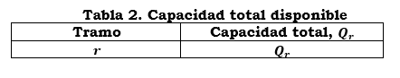 Qr : Capacidad disponible de transporte en el tramo regulatorio r.