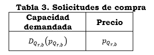 DQr,b ( PQr,b ) : Cantidad del producto Qr que el comprador b esta dispuesto a comprar al precio PQr,b . Este valor se expresará en kpcd. PQr,b : Precio que el comprador b está dispuesto a pagar por la capacidad DQr,b ( PQr,b ) . Este valor se expresará en la moneda vigente por kpcd.