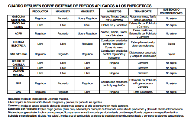 a. Falta de una Política en materia de Precios de la canasta de energéticos