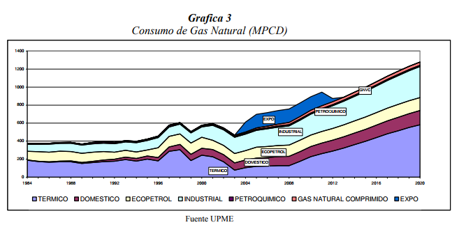 El sistema de transporte de gas natural en el interior de país 9 fue desarrollado teniendo en cuenta, entre otros, las reservas probables determinadas por ECOPETROL del Campo de Opón, ubicado en el Magdalena Medio, que inicialmente fueron estimadas en1400 GPC. Sin embargo, finalmente dichas reservas se confirmaron en solo 50 GPC. Estehecho generó un desbalance en la infraestructura actual del sistema de transporte,ocasionando la concentración del abastecimiento en un solo campo productor œ Guajira -, locual requirió ampliaciones 10 a la infraestructura de transporte de gas no consideradas inicialmente para poder atender los compromisos con el sector termoeléctrico.