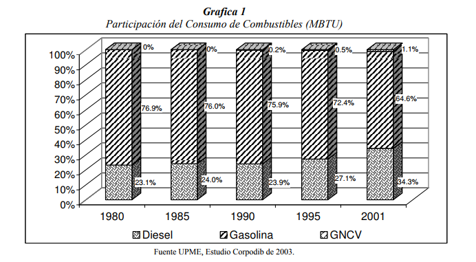 Se debe catalogar a los Sistemas de Transporte Masivo como Grandes Consumidores Individuales no intermediarios de ACPM conforme a lo establecido en el artículo 14 de laLey 681 de 2001 a los cuales se les debe aplicar precios de combustibles que reflejen costos eficientes basados en paridad de importación desde la Costa del Golfo de los EstadosUnidos 15 . Adicionalmente, los sistemas de Transporte Masivo deben cumplir la Resolución447 de 2003, expedida por los Ministerios de Minas y Energía y del Medio Ambiente,Vivienda y Desarrollo Territorial, mejorando de esta manera la calidad ambiental de los combustible.