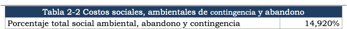 - Dado que como lo señala los informes de Tipiel ya se tiene incluido un 1% de gestión social se incluiran los porcentajes de la – restando en el rubro social el 1% por ya estar incluido.