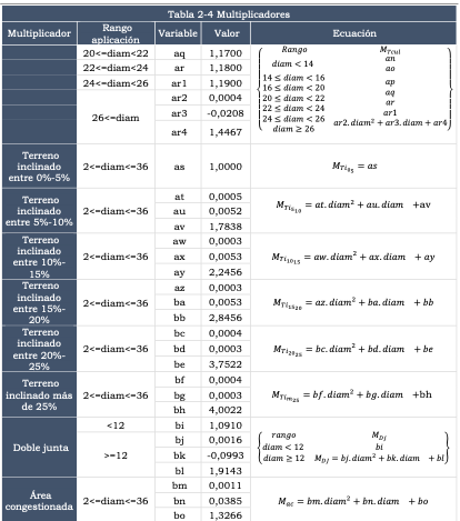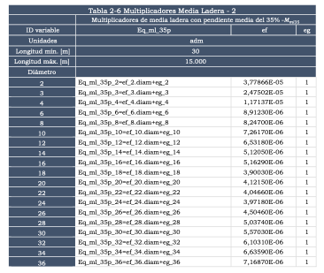 - La longitud considerada en la ecuación no debe contener la longitud de los cruces especiales.