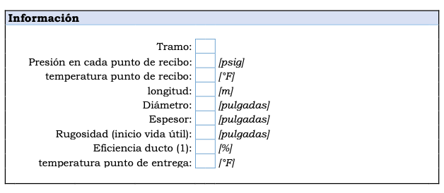 Como parte de las memorias de cálculo el transportador deberá reportar la siguiente información: