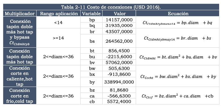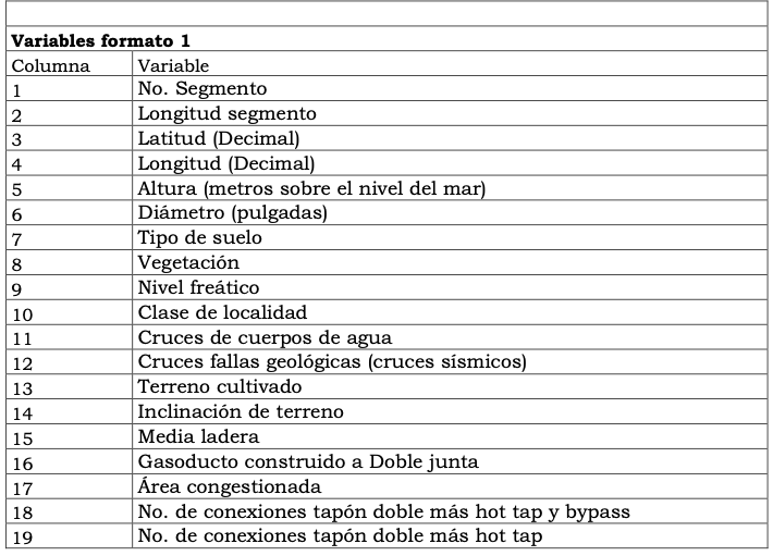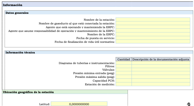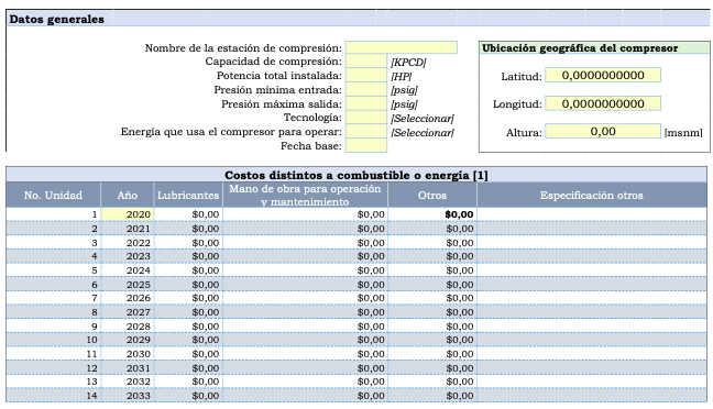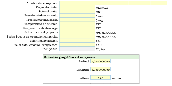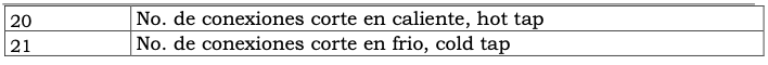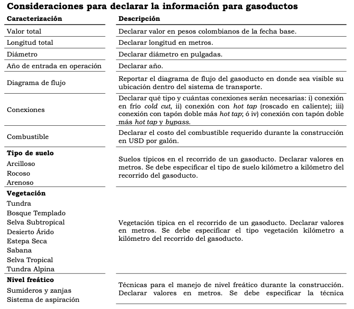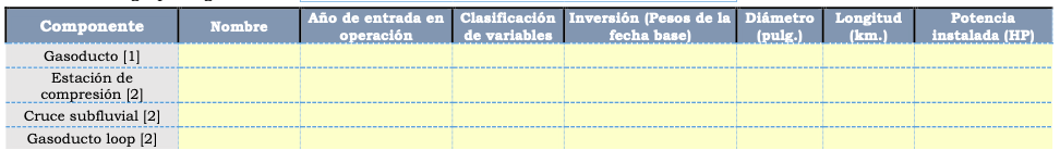 [2] Se deben agregar las filas necesarias para incluir todos los componentes presentes en el respectivo tramo o grupo de gasoductos. A cada componente se le debe asignar un nombre.