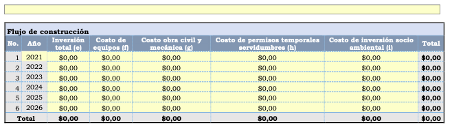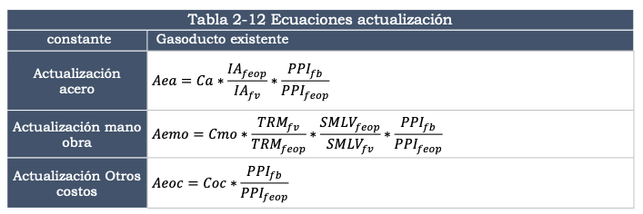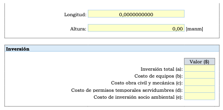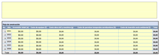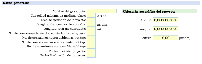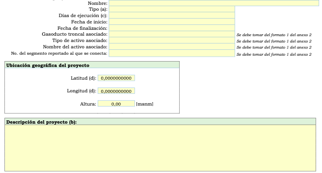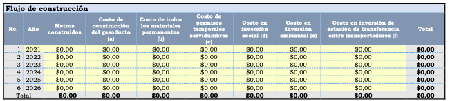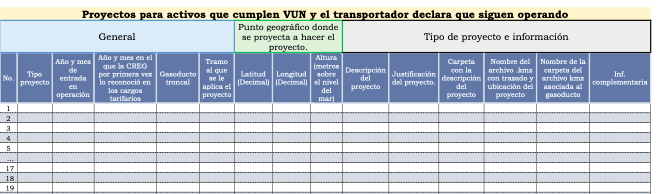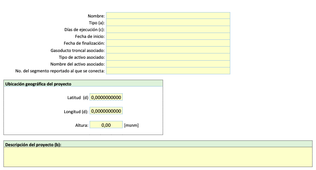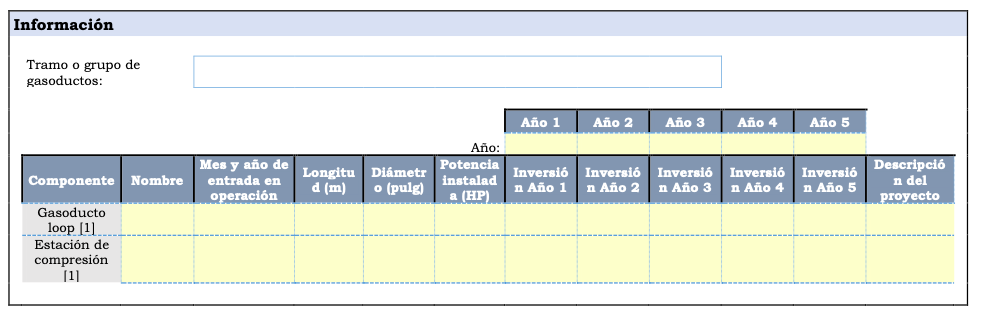 [1] Se deben agregar las filas necesarias para incluir los proyectos (PNI) existentes en el respectivo tramo o grupo de gasoductos. A cada proyecto se le debe asignar un nombre.