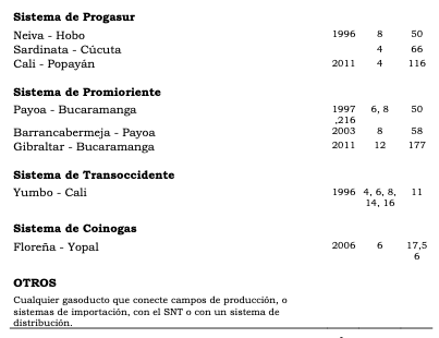 [4] Se debe diligenciar la información de capacidad contratada para cada tramo o grupo de gasoductos existentes.