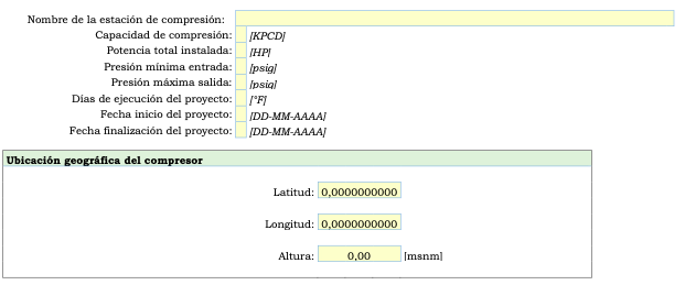 [4] Gastos en compresión de acuerdo con lo establecido en la presente Resolución. Se debe asignar un nombre a la estación de compresión. En documento aparte se deben reportar los soportes técnicos requeridos en la presente Resolución.