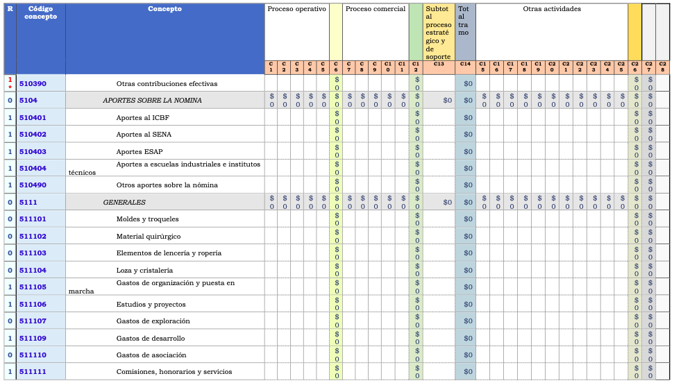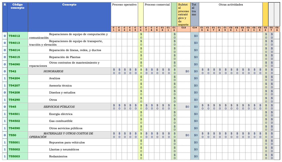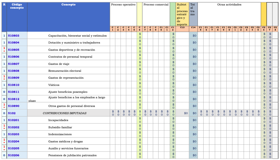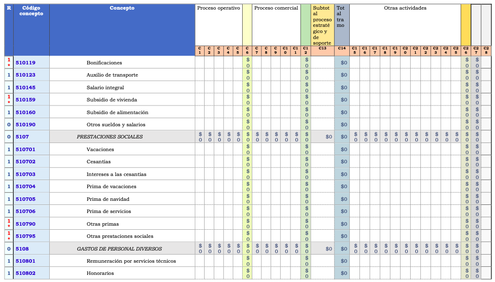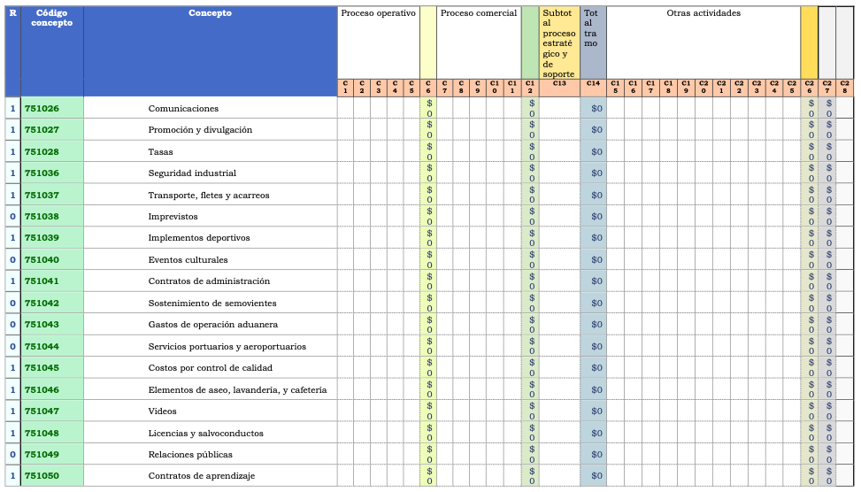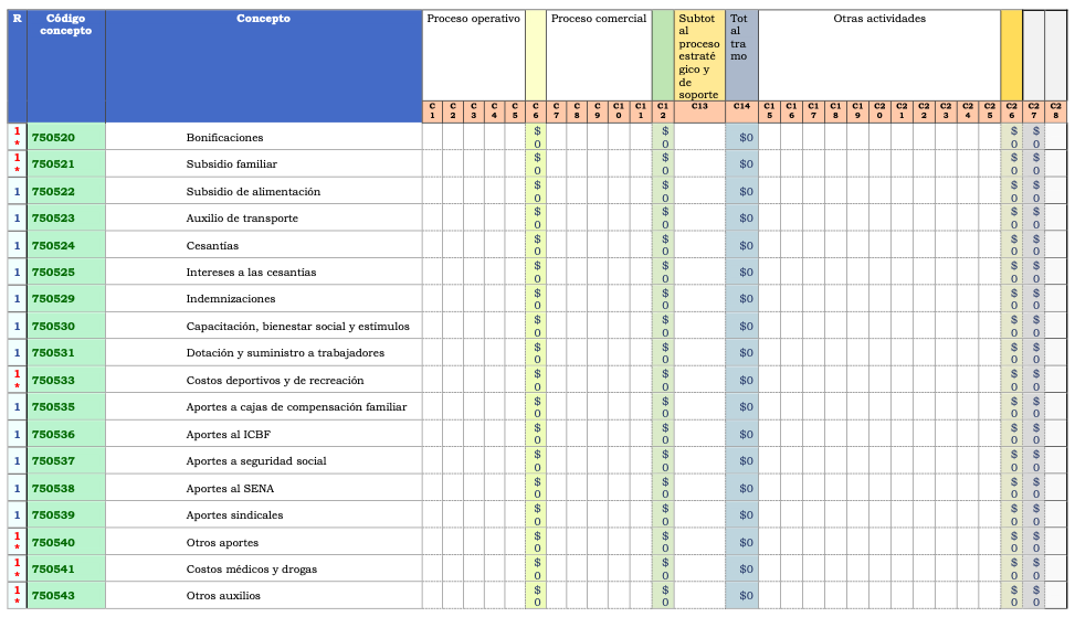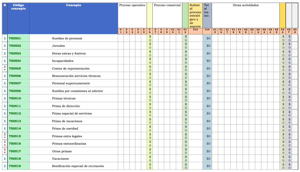 Nota 1: Los costos se declararán en pesos colombianos de la fecha base.