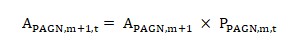 Porcentaje informado por el transportador del sistema de transporte t, en el mes m, de acuerdo con lo establecido en el numeral iv. del literal a) del Artículo 17 de la presente resolución, por el servicio prestado en el mes m por el proyecto PAGN. Dado en pesos/mes.