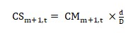 Capacidad contratada bajo cualquier modalidad contractual en el Mercado Secundario en el contrato de transporte s, por el comprador c, proveniente de la capacidad contratada en el Mercado Primario en el contrato de transporte r, en el nodo de referencia p identificado por la UPME, en el sistema de transporte t, en el mes m. Dado en KPCD.