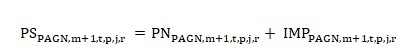 Saldo pendiente por pagar en el contrato de transporte r del Mercado Primario, por el beneficiario j, por el transportador del sistema de transporte t, por los servicios comerciales prestados en el mes m+1, para el proyecto PAGN. Dado en pesos.