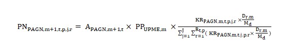 Valor a facturar en el contrato de transporte r del Mercado Primario, al beneficiario j, en el nodo de referencia p identificado por la UPME, en el sistema de transporte t, en el mes m+1, por el servicio prestado por confiabilidad en el mes m, por el proyecto PAGN y por los servicios comerciales prestados por el transportador del sistema de transporte t. Dado en pesos/mes.