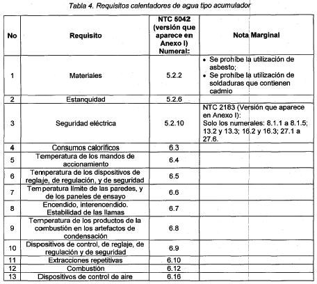 Norma Técnica Colombiana - NTC 5042. Artefactos domésticos que emplean gases combustibles para la producción de agua caliente. Calentadores de agua por acumulación. Primera actualización, 2021-06-16.