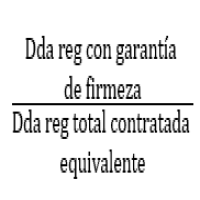 Este indicador debe calcularse de manera nacional (i.e. agregado) y por comercializador. La demanda total contratada equivalente incluye la demanda regulada con garantía de firmeza y la contratada en contratos con interrupciones en promedio diario mensualizado.